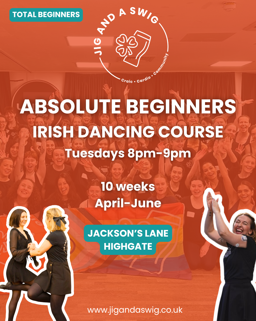 At Jig and a Swig, we offer fun and inclusive Irish dance classes for adults across London, and most people join us as total beginners!